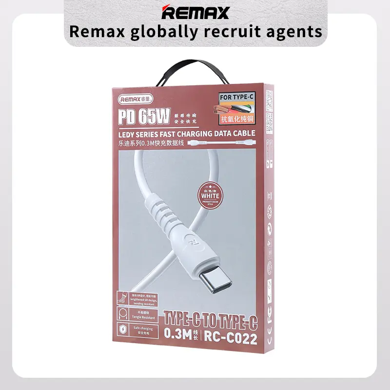 Remax adatkábel Type C- Type C, 65W, 30cm, fehér
